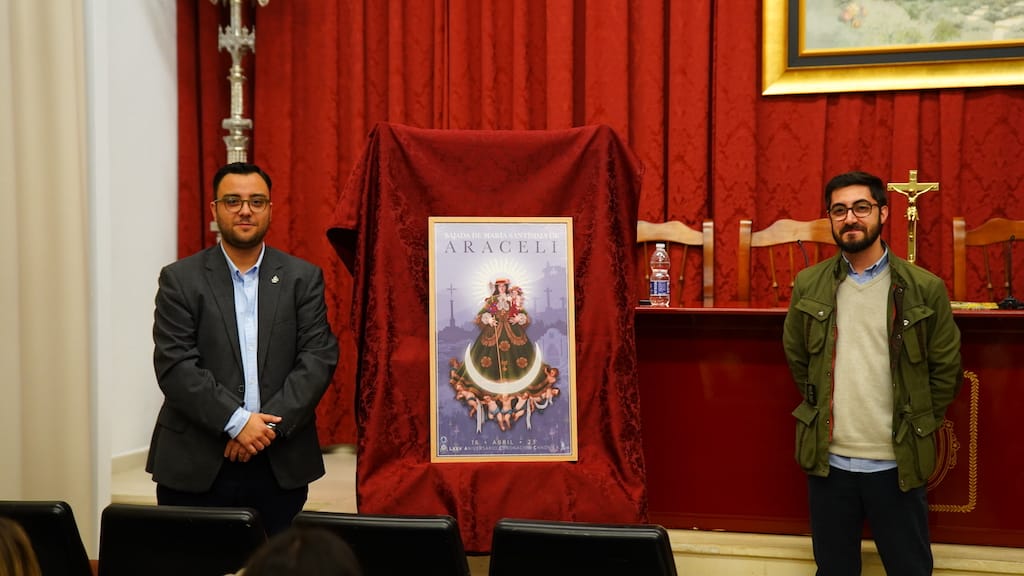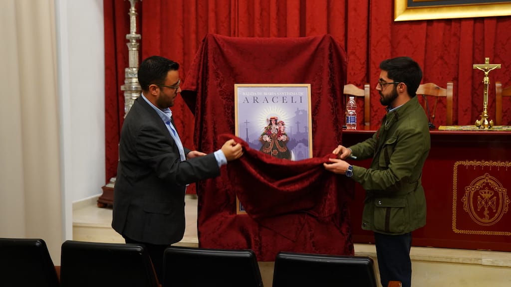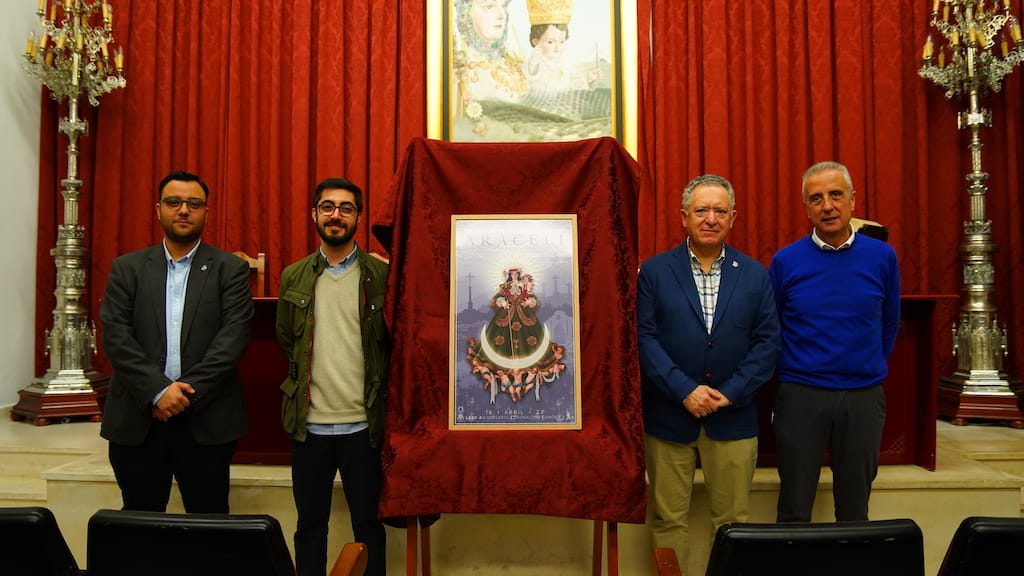 En el acto, que ha contado con la presencia del Alcalde de Lucena, Juan Pérez Guerrero, y al hermano Mayor de la Real Archicofradía, Rafael Ramírez, el presidente de la Vocalía de Juventud, Juan Manuel Osuna Almagro, ha destacado que, con motivo del LXXV Aniversario de la Coronación Canónica de la Virgen, la junta directiva acordó encargar el Cartel de la Bajada al artista local Manuel Espejo Mármol en lugar del convocar el Concurso de Carteles, depositando así la confianza en quien diseñó el escudo de los jóvenes aracelitanos.