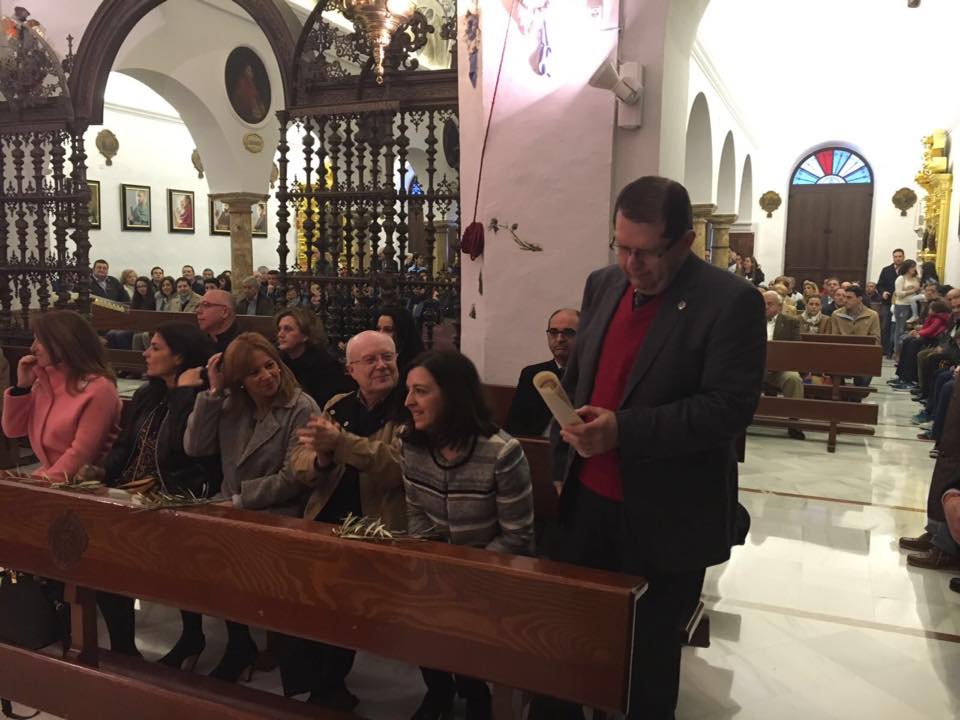 La entrega de la insignia se producía tras la celebración de la eucaristía del Domingo de Ramos en el Real Santuario de Aras.