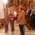 En este primer domingo de Adviento, peregrinaban hasta las plantas de la Madre Dulce y Buena de Araceli las dos secciones de Adoración Nocturna lucentina. Y dejaban, en recuerdo del acto, para el servicio de altar, un magnífico cáliz donde habrá de convertirse, en cada celebración eucarística, el vino en la Sangre de Cristo.