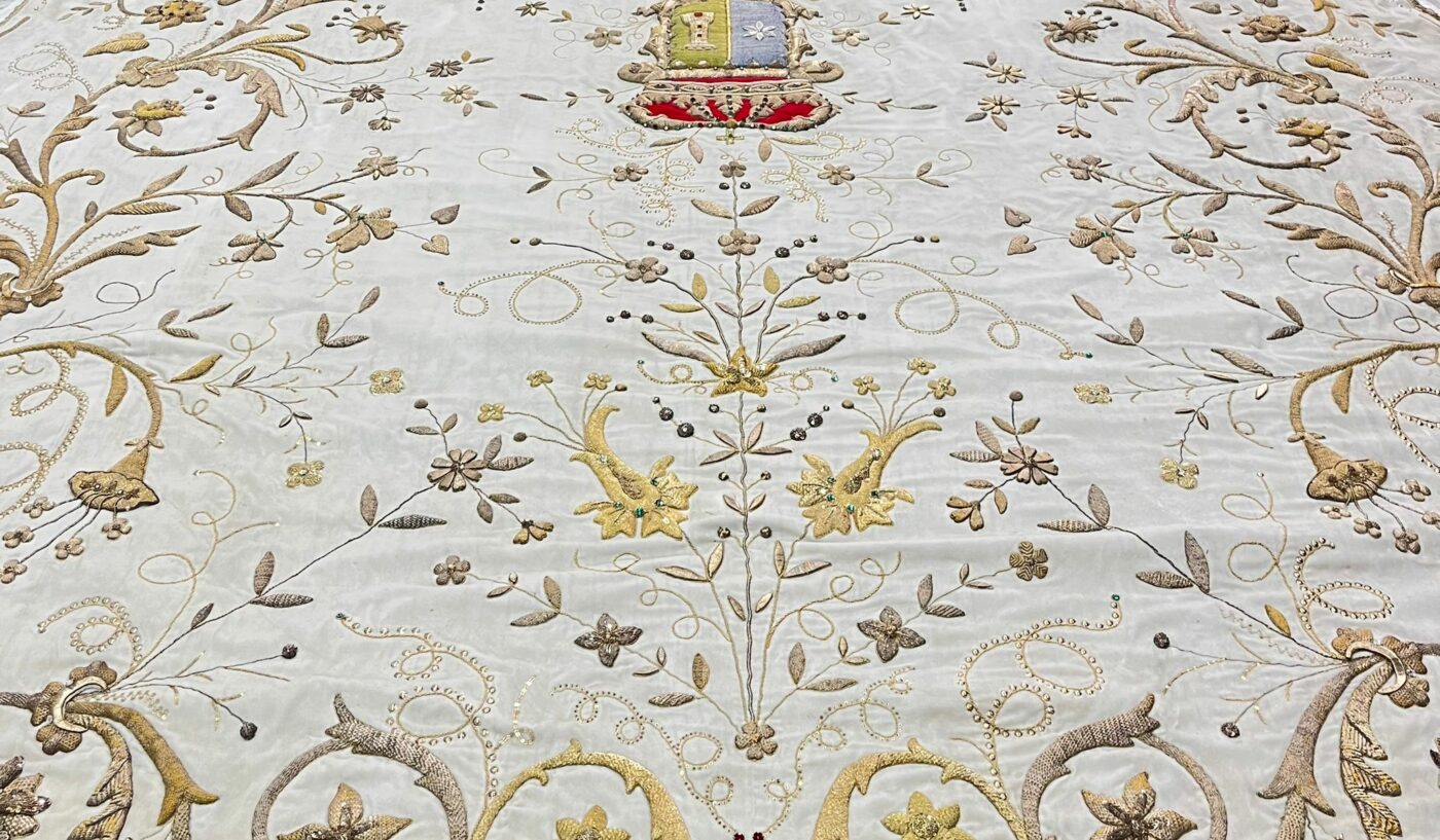 Entre los aspectos más destacados de esta restauración se encuentran también la limpieza exhaustiva del fleco perimetral, la instalación de un nuevo encaje de hojilla y la alineación de los encajes de hojillas deteriorados. Además, se ha añadido un nuevo forro a las tres piezas que componen el terno, asegurando su durabilidad y estabilidad a lo largo del tiempo.